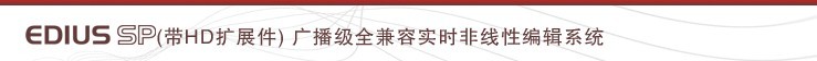 EDIUS SP(帶HD擴展選件)是先進的非線性編輯解決方案。具有讓人引以為豪的編輯加速硬件和高品質的視頻輸入輸出電路,同時具備專業的視/音頻接口。擁有廣泛的視頻設備兼容性和控制性,可以連接任何工作室環境下的所有視頻設備,從而提供了空前的伸縮性和實時混和編輯性能。