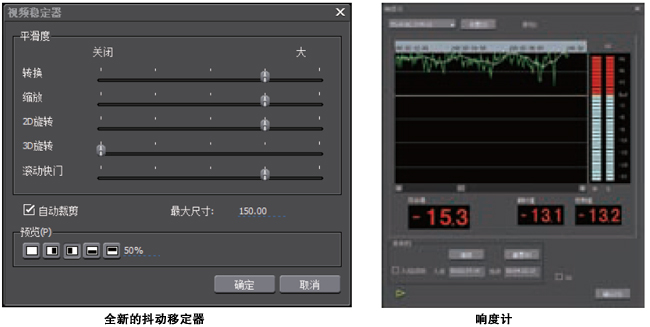 全新的抖動(dòng)穩(wěn)定器及新增響度計(jì)工具