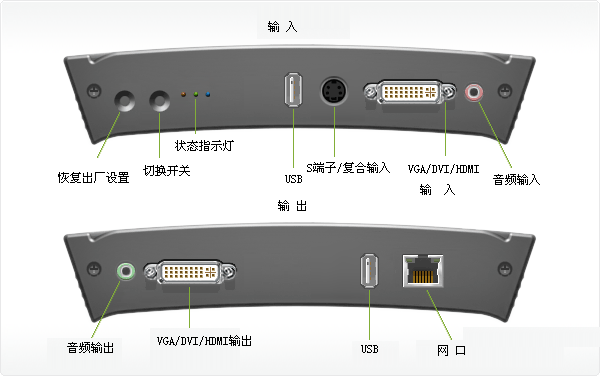 VGADVI Recorder采集一路高清視頻(最高分辨率支持:1920*1200)、一路標清模擬視頻和一路立體聲/單聲道音頻。