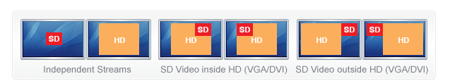 VGADVI Recorder 除了能采集一路高清視頻源(源可以是:電腦顯示器,雷達顯示器或超聲監(jiān)測儀等等)之外,還可以采集一路標清的視頻(源可以是:攝像機等等)。它將這些視頻輸入變成兩個同步的流或者一個畫中畫的流直接輸出。當然,您也可以選擇在內(nèi)容被錄制的同時,直播到遠程客戶的瀏覽器或媒體播放器上