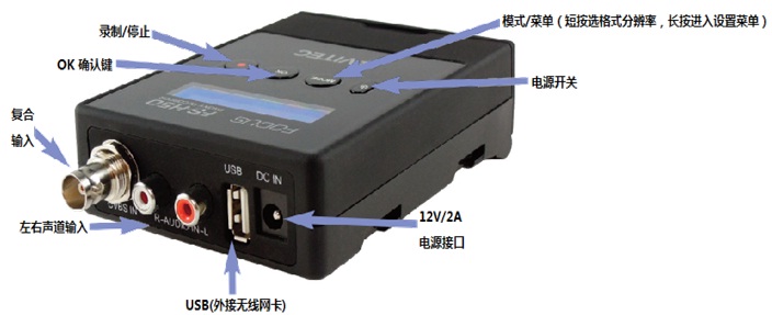OK確認(rèn)鍵短按抓單幀,長按顯示電量、輸入分辨率、日期時間;記錄媒體只支持SDHC卡,最大到32G,不支持SDXC,64G或更大的卡;