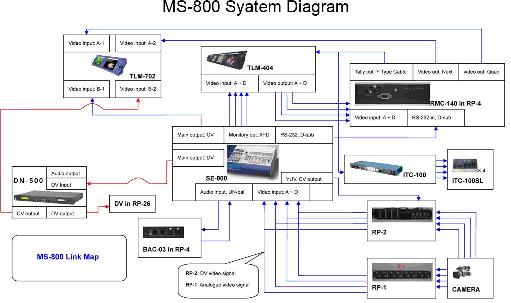 MS-800以SE-800切換臺為主要產品架構而成的移動式操作系統。可支持四組IEEE 1394 DV信號輸入,DV信號可做200米長距離傳輸功而不失真,為最適合做遠距離影像傳輸的信號格式。