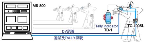 MS-800整體架構中并配備ITC-100通話系統,作為導播人員與攝影人員之通話聯系,互相溝通取得最佳拍攝場 景或互動方式,讓作業得到最佳的默契配合。