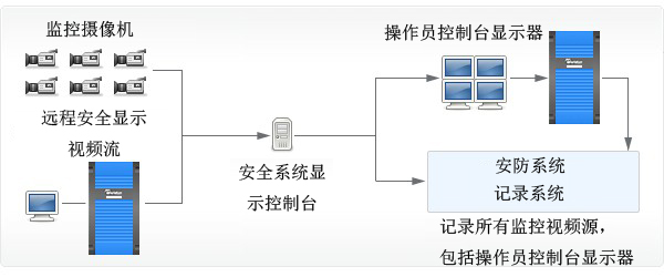 通過艾普飛(epiphan)的技術將計算機顯示、系統顯示和操作員控制臺作為虛擬攝像源供給中央錄制系統用于填補攝像記錄。從而確保了安全控制中心能夠監控整個系統的運行情況,并切能夠證明他們是否充分而適當的回應警報。
