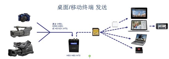 標(biāo)配USB無線網(wǎng)卡,用瀏覽器打開H50/60/70的IP地址,即可進(jìn)入管理界面。通過網(wǎng)絡(luò)終端設(shè)備例如臺式機、筆記本、iPad、iPhone,即可配置參數(shù)、控制錄像、實時預(yù)覽、添加元數(shù)據(jù)等。