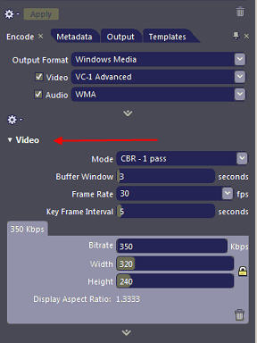 在Presets預(yù)設(shè)中選擇Encoder編碼選項卡,選擇指定輸出格式和視頻編碼器。