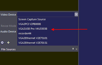 Device附近的下箭頭,選擇下拉列表中連接到你電腦的幀采集器。