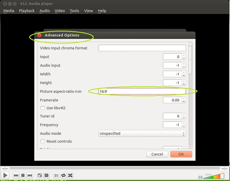Options”高級選項,確保在這個窗口中指定的長寬比是跟你的視頻源一樣的。