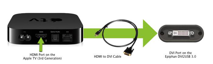 選項(xiàng)2: 使用你的iPad無(wú)線AirPlay和Apple TV蘋果電視連接DVI2USB 3.0視頻捕獲器