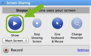 點(diǎn)擊“Show”顯示按鈕開(kāi)始與您的與會(huì)者共享您的屏幕。