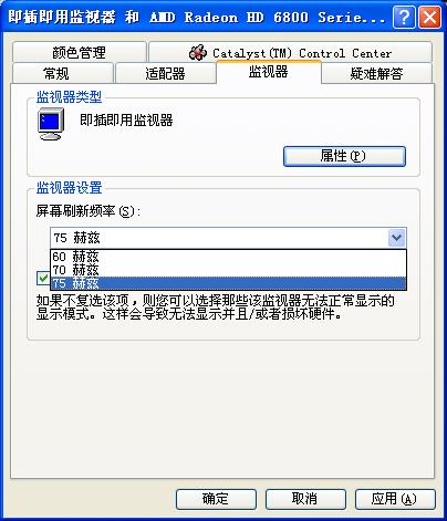 7.    若想采集到更高幀速率的視頻,可將信號源的“屏幕刷新頻率”改為75赫茲或更高如下圖示