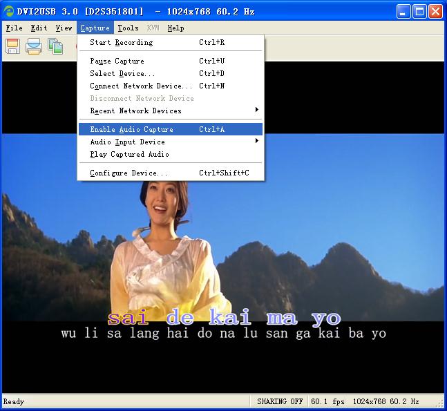 2.    單擊捕獲工具用戶界面的“Capture”菜單下“Enable Audio Capture”選項,啟用采集音頻功能。