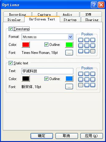 3.    若想給視頻加入自己的文字和時間戳,則可在“On-Screen Text”選項下進行設置文字、字體、字號、顏色及位置。