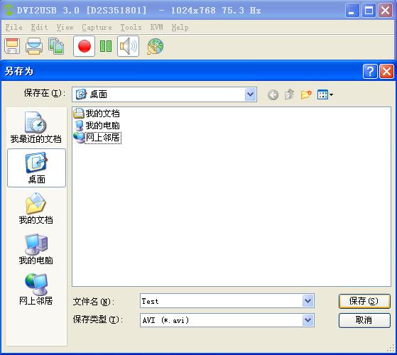 9.    現在點擊工具欄中的紅色按鈕會彈出“另存為”的窗口,如下圖所示,選擇輸入視頻存放的位置及名稱后,點擊“保存”按鈕即可開始錄制視頻。