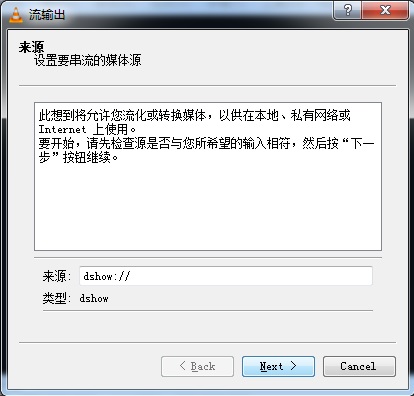 4.點擊“串流”按鈕后轉到選擇信號來源頁面,不做修改直接點擊“Next”下一步。