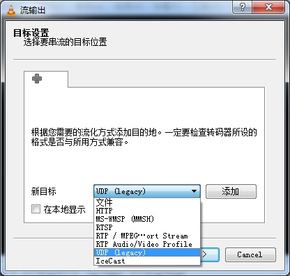 5.選擇新目標為“UDP……”傳輸協議,并點擊后面的“添加”按鈕