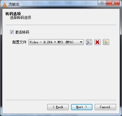 7.在配置文件后下拉三角型選擇轉碼的方式,例:“Video - H.264 + MP3 (MP4)”