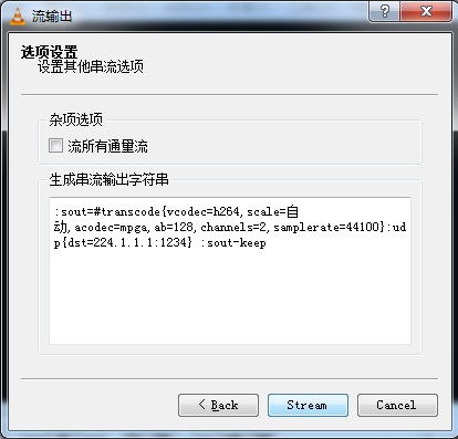 9.完成后點擊“保存”按鈕,出現下圖所示選項設置,點擊“Stream”流按鈕就開始串流輸出了。