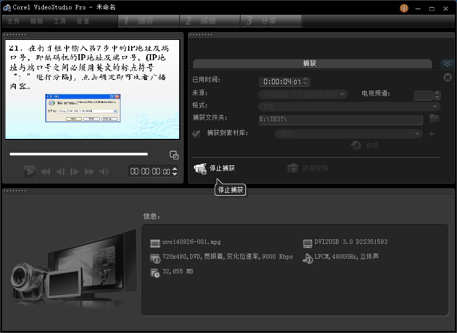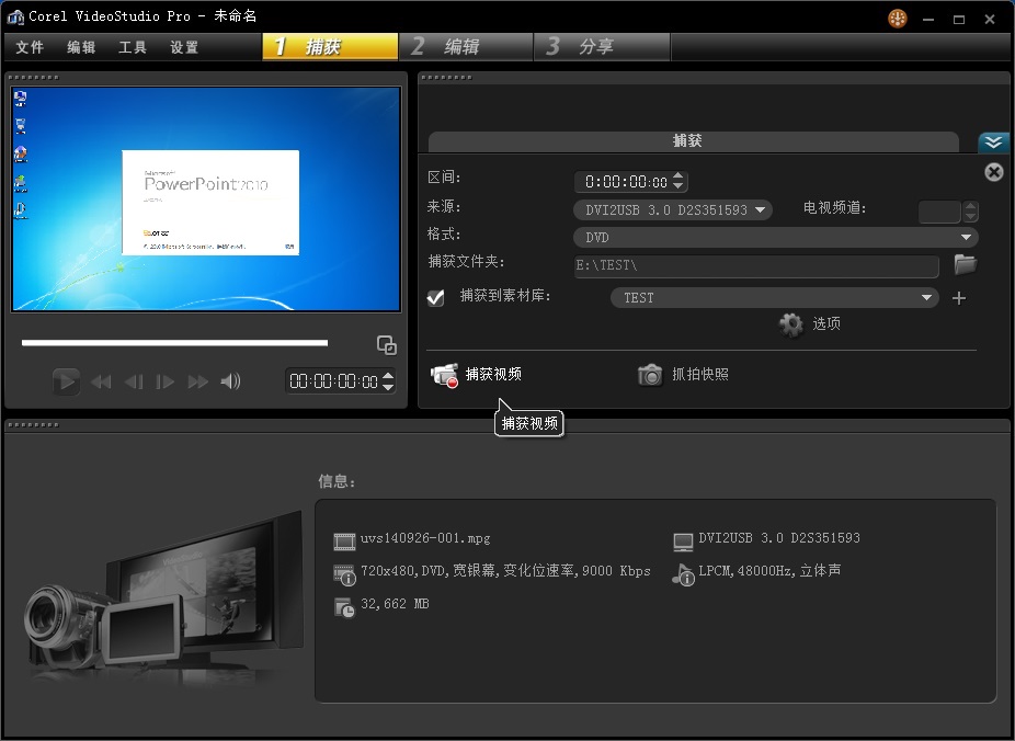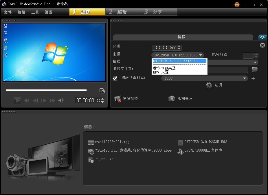 用會聲會影調(diào)用DVI2USB 3.0采集卡編輯