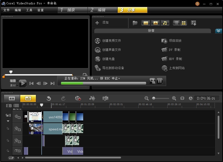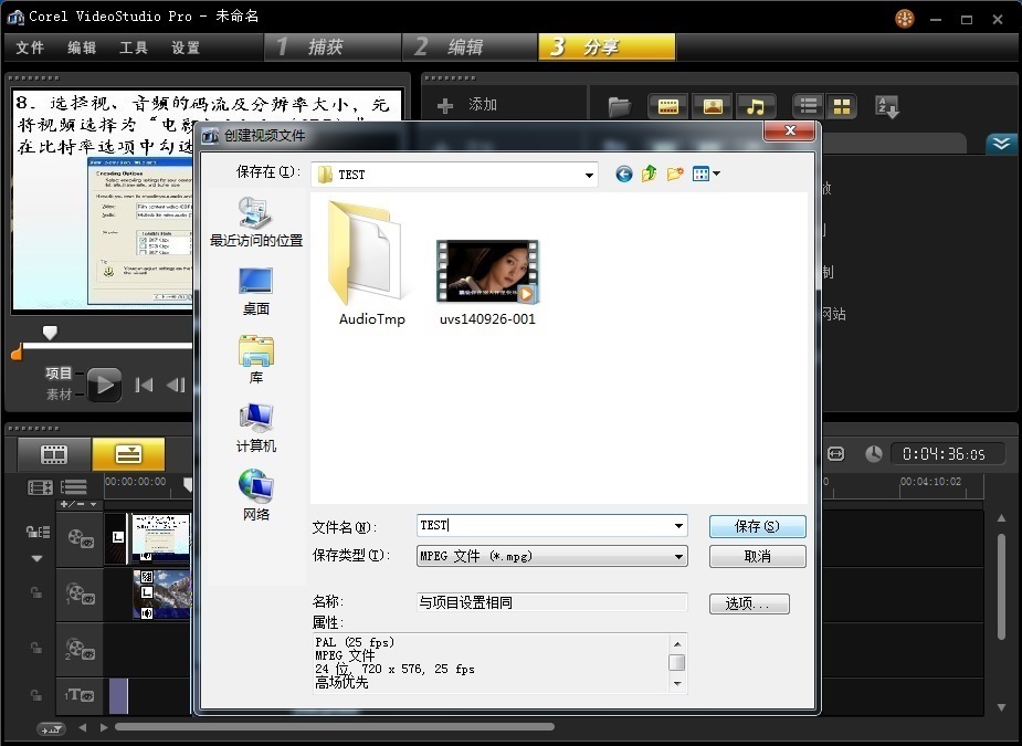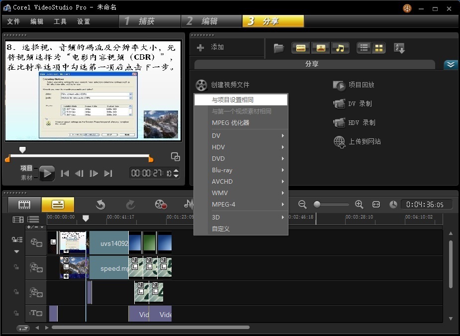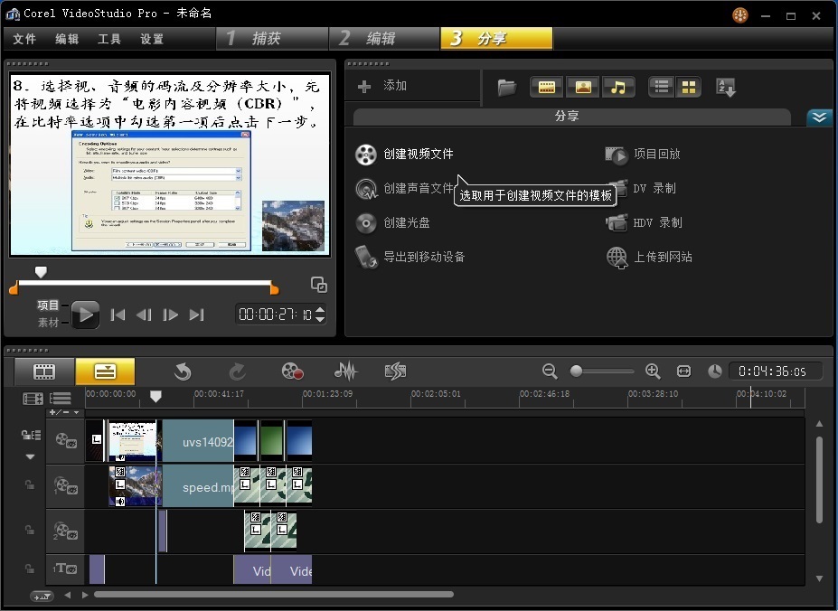 10.     編輯完成后,點擊第三步分享,在此可將做好的視頻輸出成文件或刻盤。