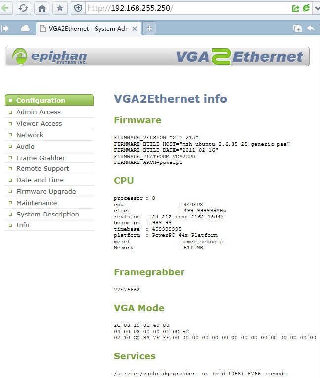 至此,遠程調用Epiphan VGA2Ethernet設備已講述完成,由此可見,可以把它當做一個VGA/DVI接口的網絡攝像頭來進行應用。
