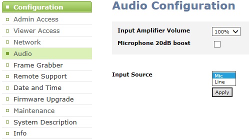 6.  在“Audio”項菜單下選擇輸入的音頻源類型,也可以調整音頻的增益。
