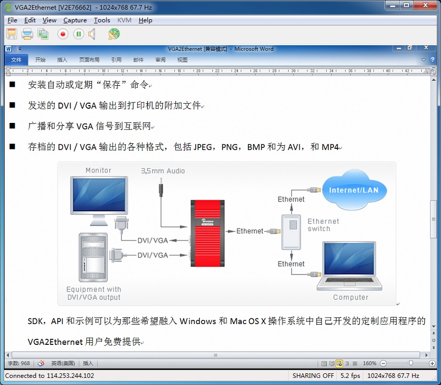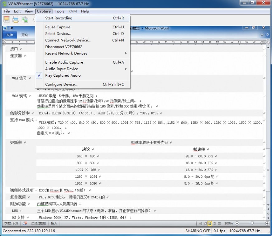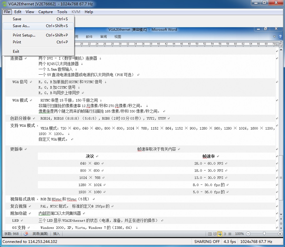 下面介紹如何通過VGA2Ethernet采集屏幕內容并在遠程客戶端電腦上接收顯示并保存。