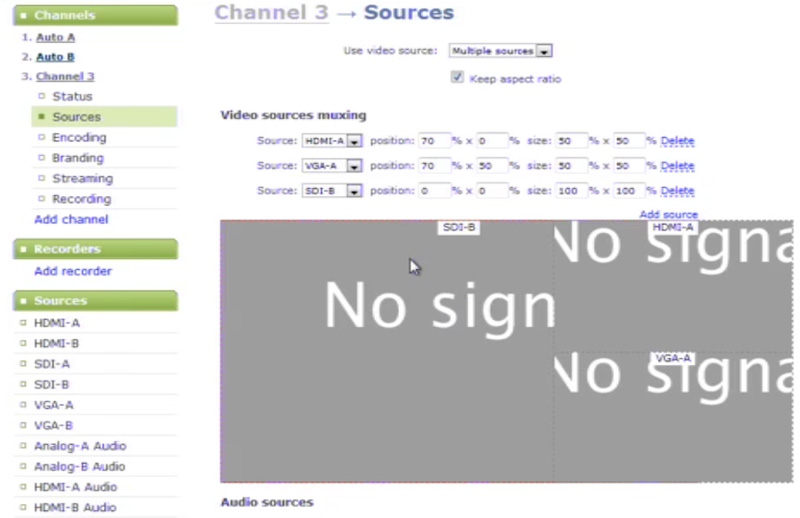 首先我們添加一個多源通道,通過自定義布局的功能我們來設置一個實現三分屏的效果。