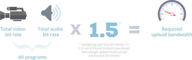 您可以使用以下簡單的公式來估計出網(wǎng)絡所需的流式傳輸上傳帶寬的安全級別: