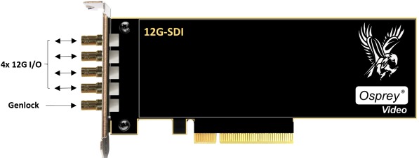 Osprey Raptor 1245具有四個12G-SDI連接。端口是雙向的,可與標清,高清,超高清和4K DCI一起使用。所有12xx Raptor卡可以捕捉和回放高達60fps。每個SDI輸入支持16個音頻通道(8個立體聲通道),最多可在所有輸入之間共有128個組合音頻通道。如果卡在輸出模式下使用,則同步鎖定輸入允許幀同步