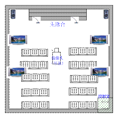 培訓場景是為了遠程教育和事業企業單位業務培訓的需要而訂制的場景,可以同時容納300個客戶端同時參加培訓,缺省布局如下: