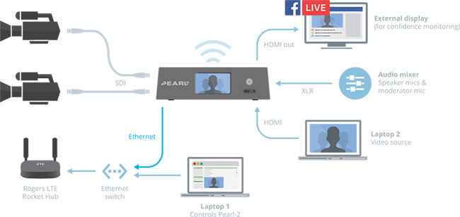 更好的是,Anil可以創(chuàng)建自定義的多機位布局,并使用Pearl-2的實時切換功能在布局之間進行實時流式傳輸。 結果是一個高度動態(tài)的Facebook直播 –