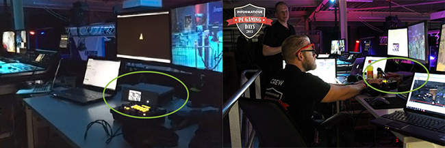 他們在Pearl中設置了四個高清頻道:兩個使用RTMP推送流到Twitch和YouTube的信號,而另外兩個則是通過LAN直接連接到游戲解說員和本地觀眾。